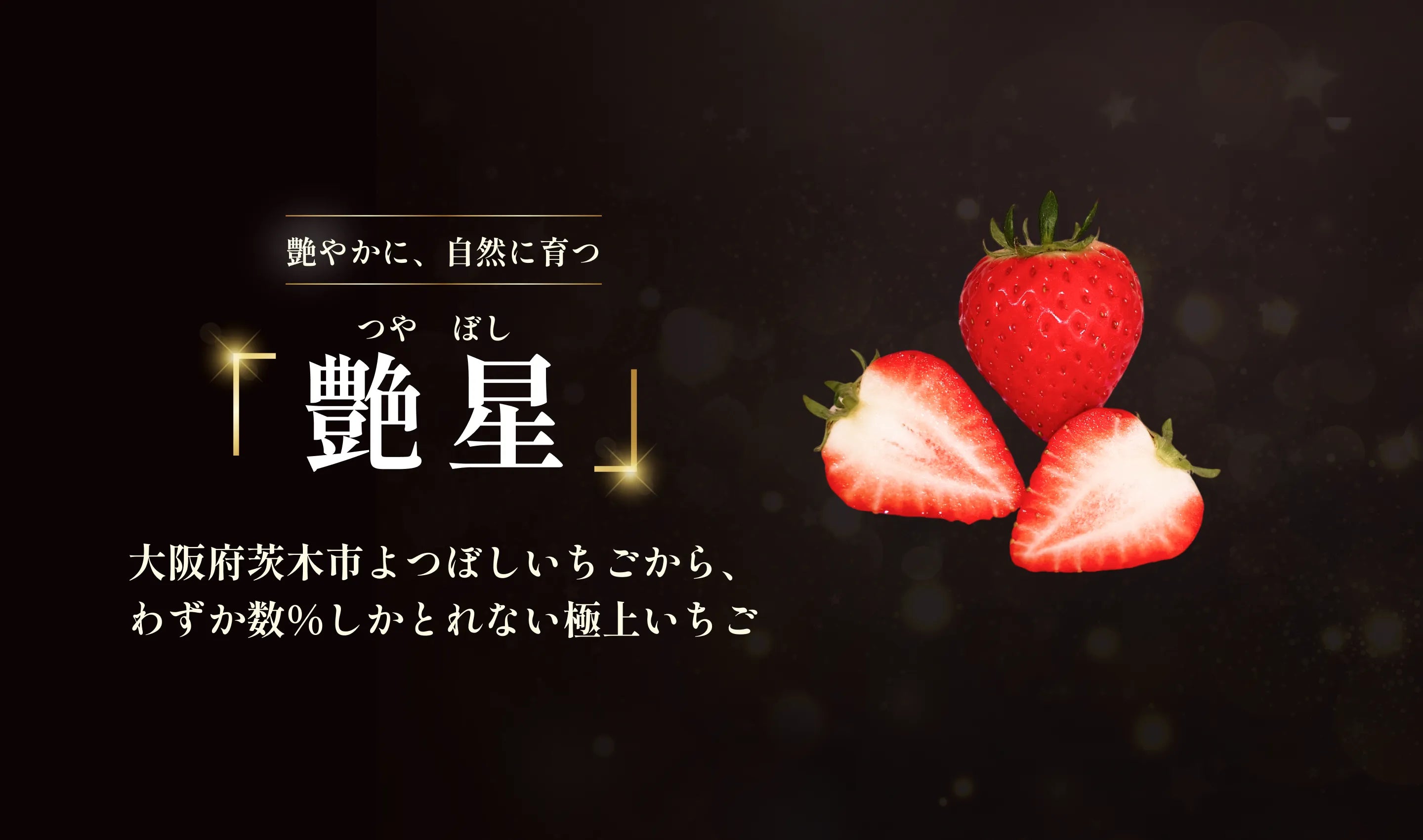 私たちは大阪府茨木市で、自然と向き合いながら「よつぼし」を育てています。甘さは色だけでは決まりません。表面の張りやツヤまで一粒ずつ見極め、その日のベストな状態で収穫しています。水分や温度を丁寧に管理し、いちご本来の甘みと香りを引き出す。手間を惜しまないことが、味の差になります。目指しているのは、安心して、また食べたくなるいちごです。